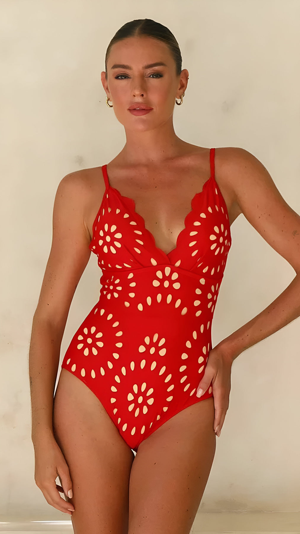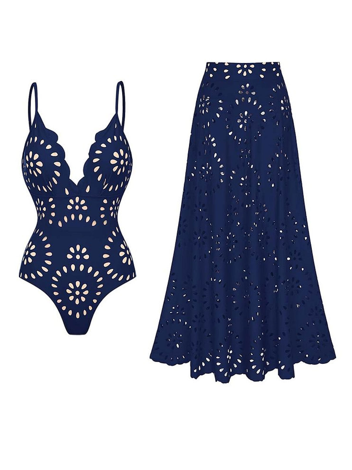 Omarm elegantie met deze Nina Bloemen Laser Cutout Skirtini, met een laser-geknipt bloemdesign dat een vleugje verfijning toevoegt aan je zwemkledingcollectie. De uitlopende rokoverlay zorgt voor een flatterende silhouet, terwijl de holle details zorgen voor ademend vermogen en stijl.