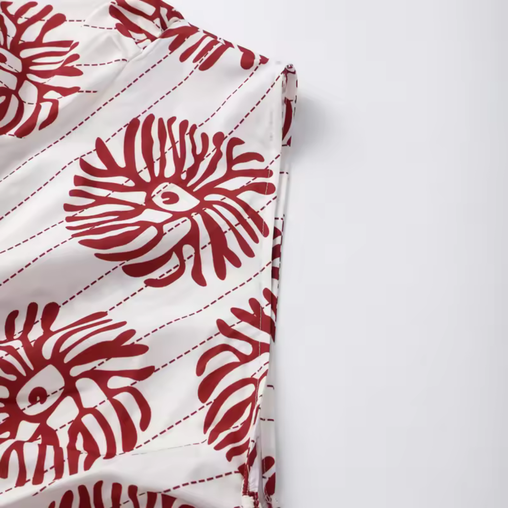 Oogverblindend dessin – Het gedurfde koraalmotief maakt een stijlvolle indruk, terwijl het fris en speels blijft.